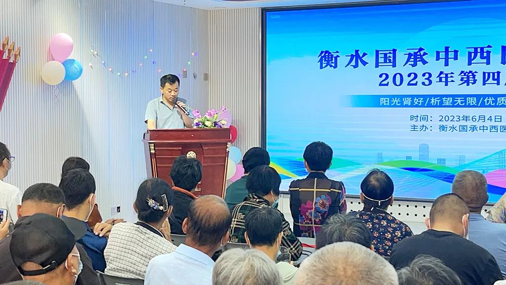 为了让各位血液透析病友们了解更多的内瘘知识,了解自身的生存状态以及如何对自身进行科学医治、合理饮食、保护内瘘和导管并解决一些日常问题,以提高生活质量、改善治疗和预后,更好地回归社会。2023年6月4日,衡水国承中西结合医院第四届肾友会在医院七楼顺利举行,一百多名肾友及家属参加了本次活动。